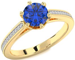 Diamond Blue Sapphire Gold Round Solitaire Pave Engagement Ring