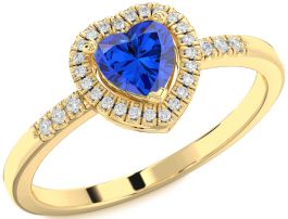 Diamond Blue Sapphire Gold Silver Heart Halo Engagement Ring