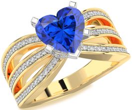 Diamond Blue Sapphire Gold Silver Heart Solitaire Pave Engagement Ring