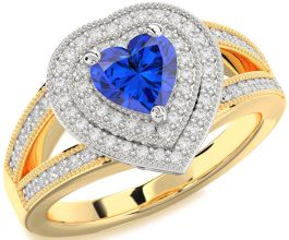 Diamond Blue Sapphire Gold Silver Heart Halo Pave Engagement Ring