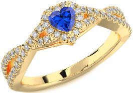 Diamond Blue Sapphire Gold Silver Heart Pave Promise Ring