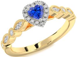 Diamond Blue Sapphire Gold Silver Heart Promise Ring