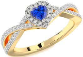 Diamond Blue Sapphire Gold Silver Heart Pave Promise Ring