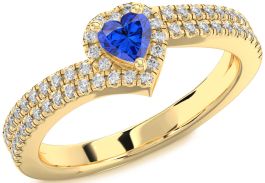 Diamond Blue Sapphire Gold Silver Heart Pave Promise Ring