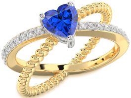 Diamond Blue Sapphire Gold Silver Heart Solitaire Pave Engagement Ring