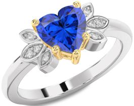 Diamond Blue Sapphire Gold Silver Heart Solitaire Engagement Ring
