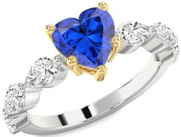 Diamond Blue Sapphire Gold Silver Heart Engagement Ring