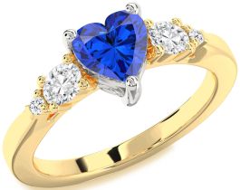 Diamond Blue Sapphire Gold Silver Heart Three Stone Engagement Ring