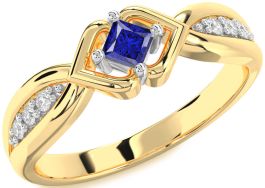 Diamond Blue Sapphire Gold Silver Princess Promise Ring