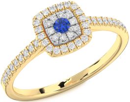 Diamond Blue Sapphire Gold Silver Halo Round Pave Promise Ring