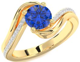 Diamond Blue Sapphire Gold Silver Round Solitaire Engagement Ring
