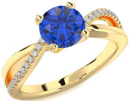 Diamond Blue Sapphire Gold Silver Round Solitaire Engagement Ring