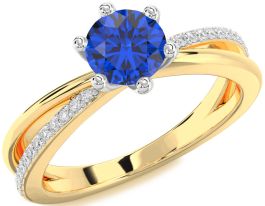 Diamond Blue Sapphire Gold Silver Round Solitaire Engagement Ring