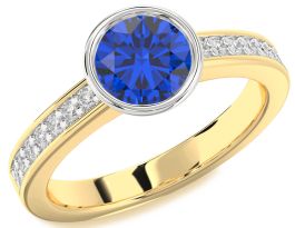 Diamond Blue Sapphire Gold Silver Round Solitaire Pave Engagement Ring