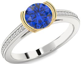 Diamond Blue Sapphire Gold Silver Round Solitaire Pave Engagement Ring