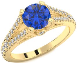 Diamond Blue Sapphire Gold Silver Round Solitaire Pave Engagement Ring