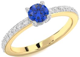 Diamond Blue Sapphire Gold Silver Round Solitaire Pave Engagement Ring