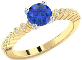 Diamond Blue Sapphire Gold Silver Round Solitaire Engagement Ring