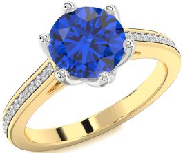 Diamond Blue Sapphire Gold Silver Round Solitaire Pave Engagement Ring