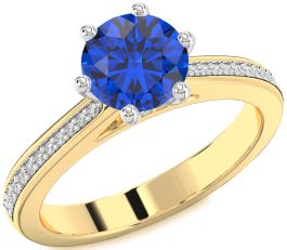 Diamond Blue Sapphire Gold Silver Round Solitaire Pave Engagement Ring