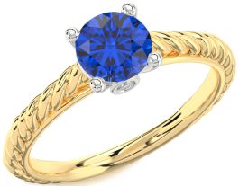 Diamond Blue Sapphire Gold Silver Knot Round Solitaire Engagement Ring