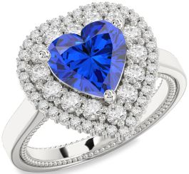 Diamond Blue Sapphire Platinum Heart Halo Engagement Ring