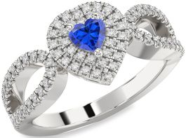 Diamond Blue Sapphire Platinum Heart Pave Promise Ring