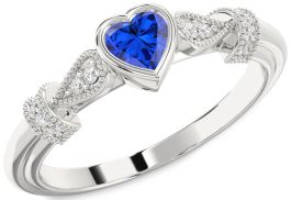 Diamond Blue Sapphire Platinum Heart Promise Ring