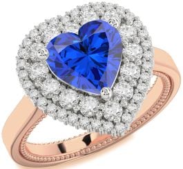 Diamond Blue Sapphire Platinum & Rose Gold Heart Halo Engagement Ring