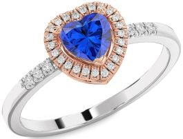 Diamond Blue Sapphire Platinum & Rose Gold Heart Halo Engagement Ring