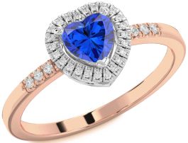 Diamond Blue Sapphire Platinum & Rose Gold Heart Halo Engagement Ring