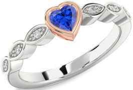 Diamond Blue Sapphire Platinum & Rose Gold Heart Promise Ring
