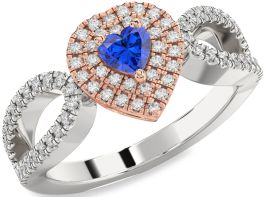 Diamond Blue Sapphire Platinum & Rose Gold Heart Pave Promise Ring