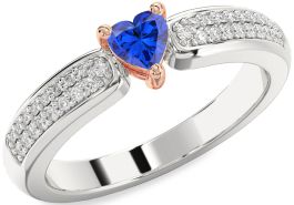 Diamond Blue Sapphire Platinum & Rose Gold Heart Pave Promise Ring