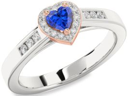 Diamond Blue Sapphire Platinum & Rose Gold Heart Promise Ring