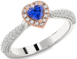 Diamond Blue Sapphire Platinum & Rose Gold Heart Pave Promise Ring