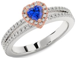 Diamond Blue Sapphire Platinum & Rose Gold Heart Pave Promise Ring