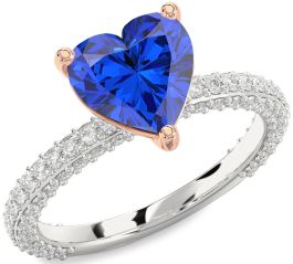 Diamond Blue Sapphire Platinum & Rose Gold Heart Solitaire Pave Engagement Ring