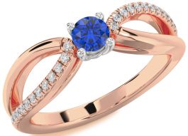 Diamond Blue Sapphire Platinum & Rose Gold Round Promise Ring