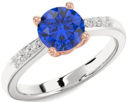 Diamond Blue Sapphire Platinum & Rose Gold Round Solitaire Engagement Ring