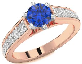 Diamond Blue Sapphire Platinum & Rose Gold Round Solitaire Engagement Ring