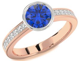 Diamond Blue Sapphire Platinum & Rose Gold Round Solitaire Pave Engagement Ring