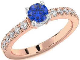 Diamond Blue Sapphire Platinum & Rose Gold Round Solitaire Engagement Ring