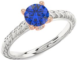 Diamond Blue Sapphire Platinum & Rose Gold Knot Round Solitaire Engagement Ring