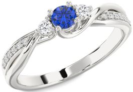Diamond Blue Sapphire Platinum Round Three Stone Engagement Ring