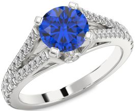 Diamond Blue Sapphire Platinum Round Solitaire Pave Engagement Ring