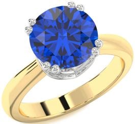 Diamond Blue Sapphire Platinum & Yellow Gold Halo Round Solitaire Engagement Ring