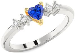 Diamond Blue Sapphire Platinum & Yellow Gold Heart Promise Ring