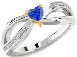 Diamond Blue Sapphire Platinum & Yellow Gold Heart Promise Ring