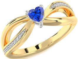 Diamond Blue Sapphire Platinum & Yellow Gold Heart Promise Ring